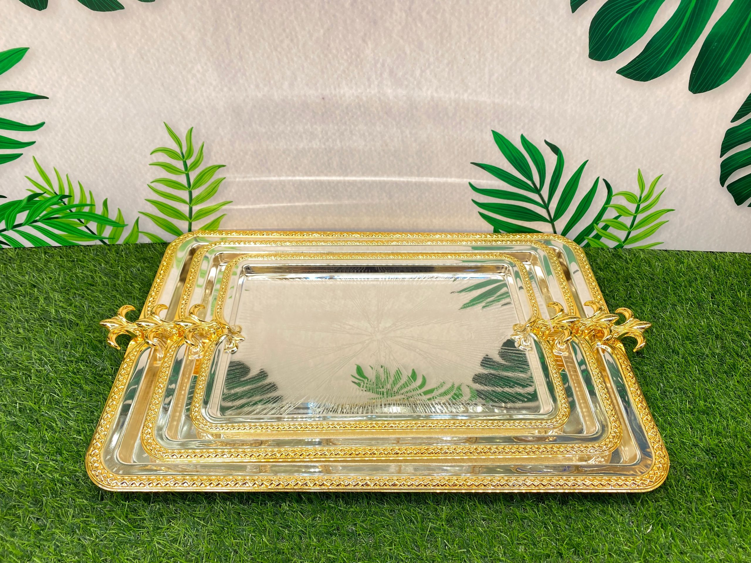 Custom design gold iron tray with alloy handle 3pcs