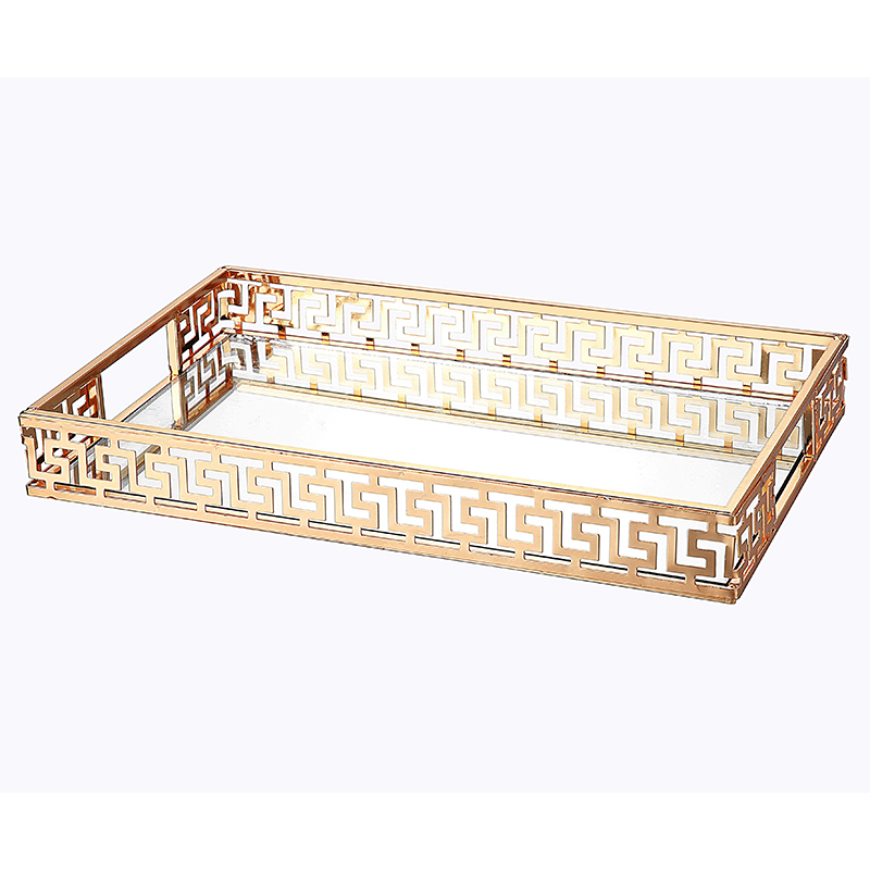Gold Metal Decorative Tray Mirror Makeup Tray